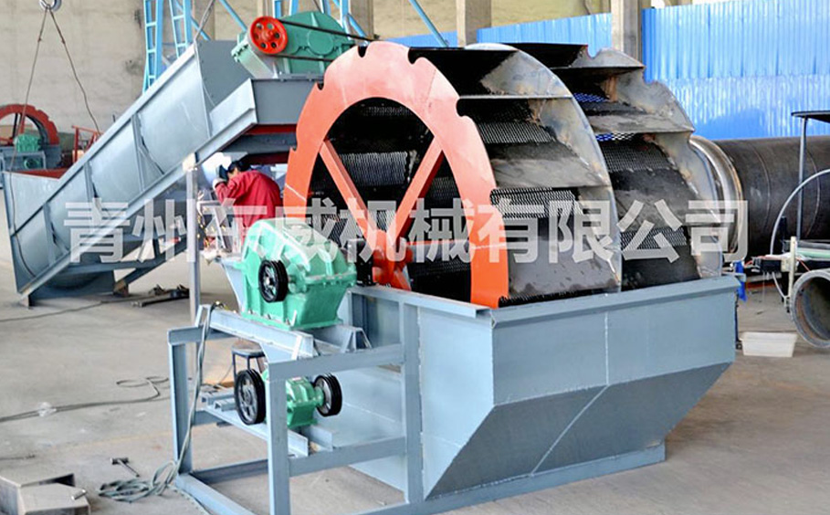 在輪斗洗砂機的工作過程中,砂石的翻滾和研磨主要依靠輪斗的旋轉(zhuǎn)來實現(xiàn)。具體來說,當砂石通過給料設(shè)備進入洗砂機的洗槽內(nèi)后,輪斗開始旋轉(zhuǎn)。